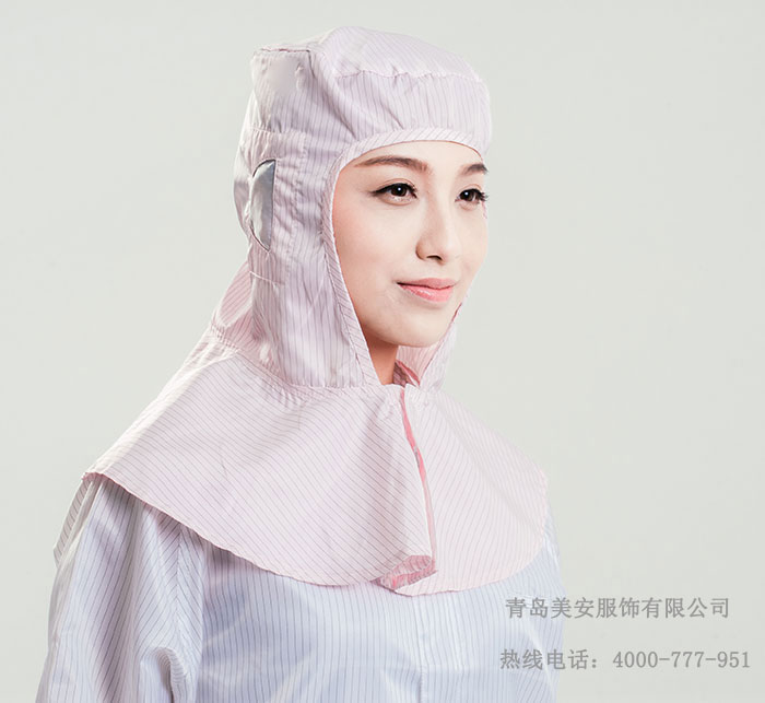 美安服饰防静电帽子是由专用的防静电洁净面料制作。此面料采用专用涤纶长丝,经向或纬向嵌织导电纤维。 具有高效、永久的防静电、防尘性能,薄滑,织纹清晰的特点。在制作成衣过程中采用专用的包缝机械,有效减少微粒的产生。无尘的粘扣带避免了因掉毛污染环境。根据级别要求提供不同款式,并采用导电纤维缝制,使防静电帽子各部分保持电气连续性,从而满足高级别无尘环境的要求。